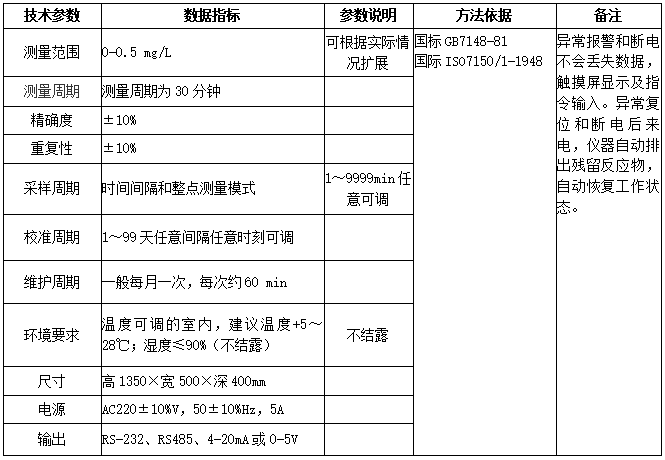 氨氮在線分析儀技術參數: