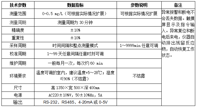總鈷在線分析儀技術(shù)參數(shù)